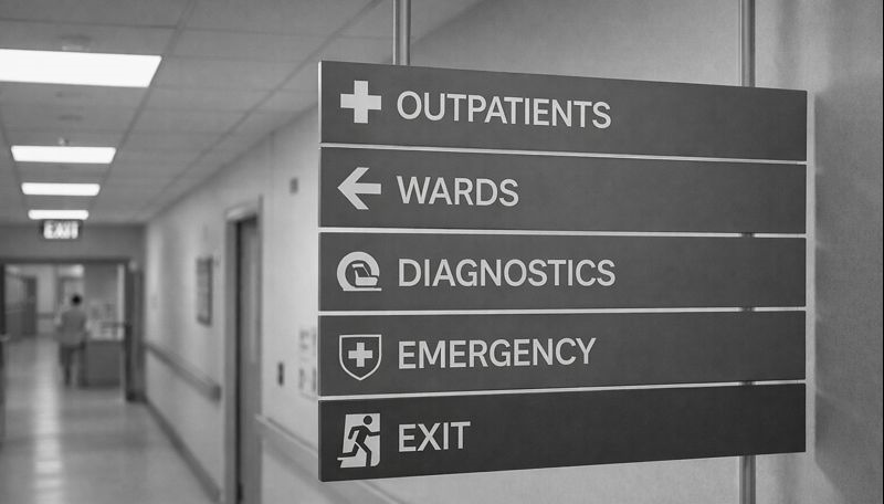 Indian hospitals often struggle with signage and navigation. Confused patients wander through corridors, asking staff repeatedly. This damages brand perception.