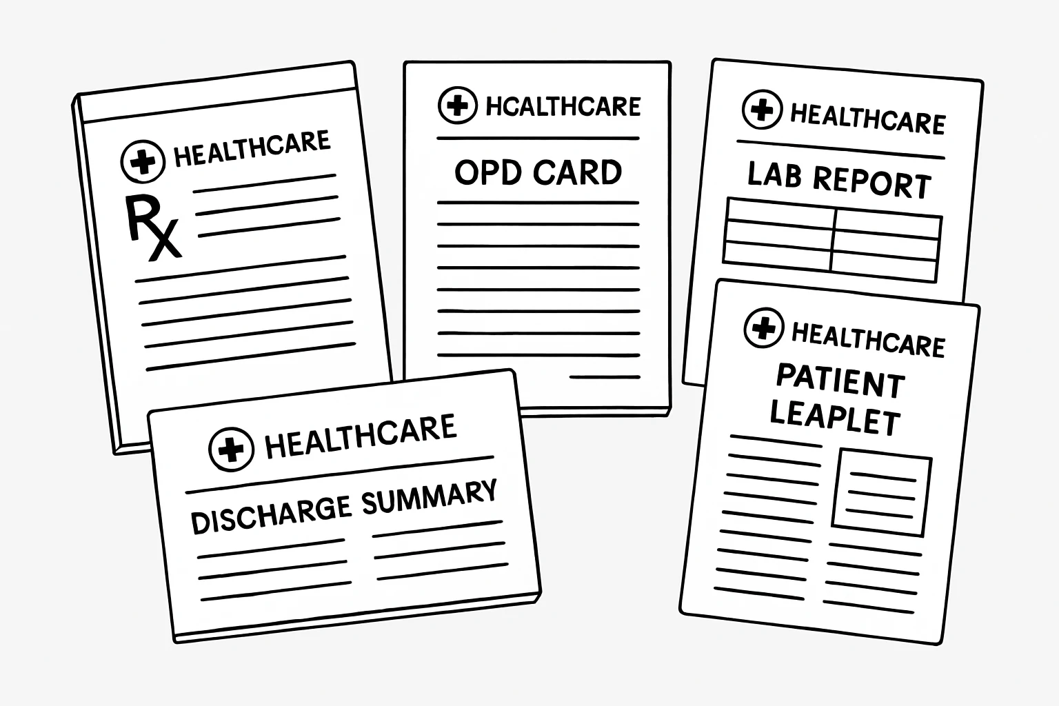 - OPD files and prescription pads
